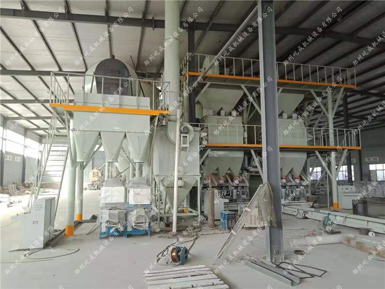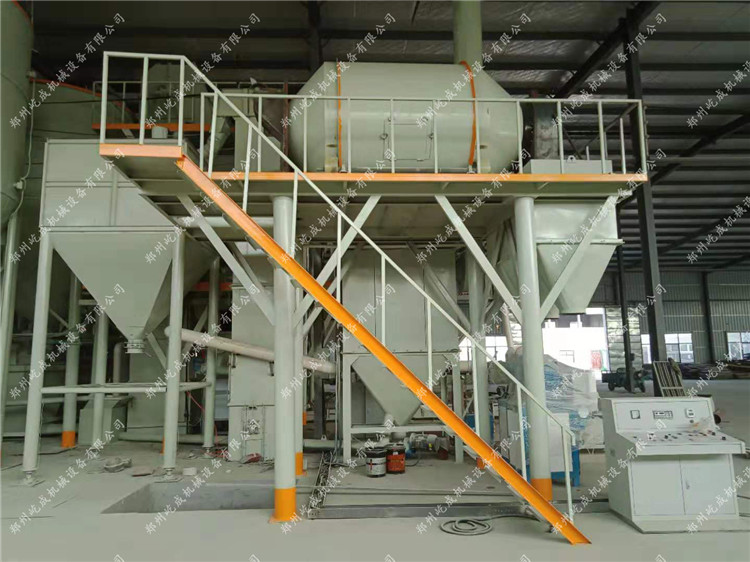 該套生產(chǎn)線位于開封市尉氏,整體設(shè)備除了這套保溫砂漿設(shè)備之外,還包括兩條全自動(dòng)碼垛型普通砂漿生產(chǎn)線,由于輕質(zhì)保溫砂漿中的?;⒅榈囊姿樘匦?,所以在客戶選購時(shí),我們會(huì)給客戶推薦這種滾筒式的粉體混合設(shè)備,在混合的過程中,可以減少?;⒅榈钠茡p情況。