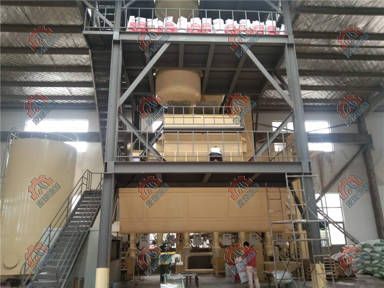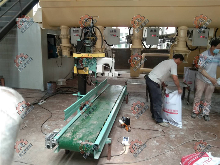 該套設(shè)備是我公司剛剛完工的一個項(xiàng)目,合作方為法萊利(上海)建材,主要生產(chǎn)產(chǎn)品為無機(jī)保溫膏料,和以往的干混砂漿不同,該設(shè)備成品為膏狀建材,前段為分體混合,之后加水混合,包裝上采用的是敞口袋裝包裝,每袋的放料速度縮短至7秒左右。在包裝過程中,敞口包裝機(jī)按照定量設(shè)置將物料放到包裝袋內(nèi),然后經(jīng)過封口機(jī)成型。