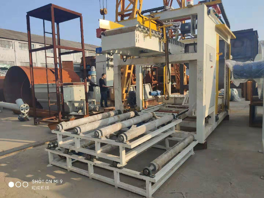 即將竣工的尉氏自動碼垛干粉砂漿生產線采用的包裝機如上圖所示,只需要人工套袋到出料口,待包裝機包裝到定量設備的物料時,會自動將成品砂漿推送到輸送帶上,輸送帶將物料運輸?shù)阶詣哟a垛機上。