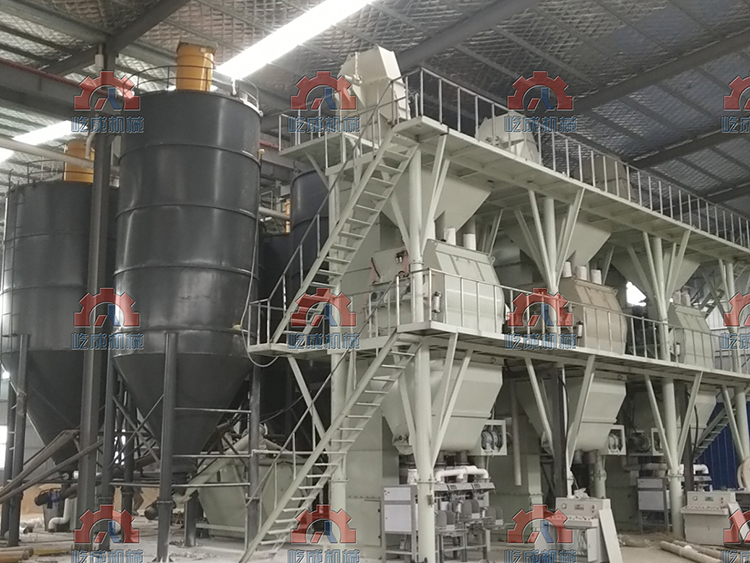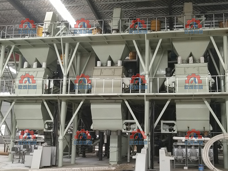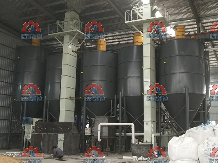 三聯(lián)機(jī)干混砂漿成套設(shè)備現(xiàn)場(chǎng)