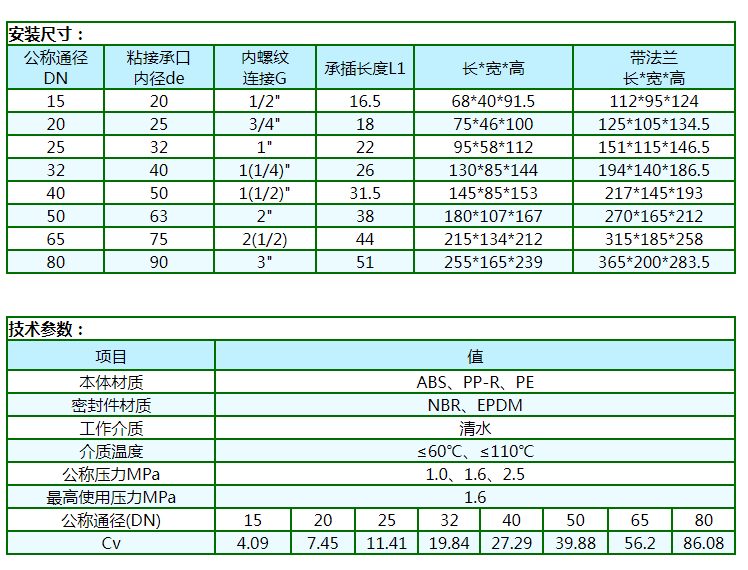 本產(chǎn)品民用系列選用國(guó)際通用型食品級(jí)工程塑料(ABS、PP-R、PE等)注造。工業(yè)用系列選用進(jìn)口阻燃型高強(qiáng)度工程塑料(PC等)注造。產(chǎn)品具有重量輕、耐腐蝕、不生銹、不結(jié)垢、導(dǎo)冷不結(jié)霜、導(dǎo)熱系數(shù)低,絕緣性能好,環(huán)保衛(wèi)生等優(yōu)點(diǎn)。啟閉原理上:采用浮動(dòng)閥芯,利用流體壓力差,誘導(dǎo)式啟閉的專利技術(shù)成果。因啟閉時(shí)無(wú)磨損(屬接觸型啟閉),而解決了傳統(tǒng)閥門(mén)因強(qiáng)制性啟閉而造成的啟閉部件和密封件磨損所引起的“跑、冒、滴、漏”的歷史性難題。它具有安裝使用方便,節(jié)能節(jié)水效果顯著(可節(jié)約傳統(tǒng)閥門(mén)的外泄內(nèi)漏所浪費(fèi)掉的水),使用壽命長(zhǎng)及物美價(jià)廉等特點(diǎn)。