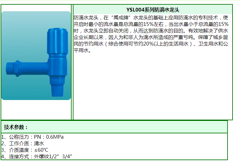 【產(chǎn)品型號】YSL004系列防滴水龍頭
